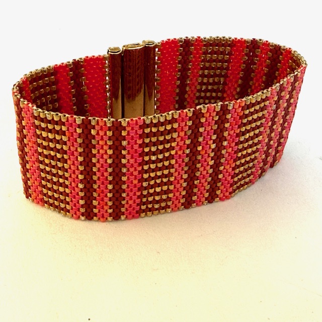 Harmonie en rose, grenat et or, des perles fines Miyuki avec un slide doré.